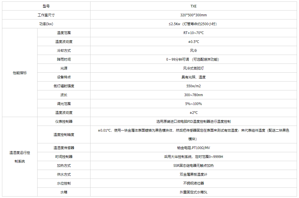 臺式氙燈老化試驗箱采用能摸擬全陽光光譜的氙弧燈來再現(xiàn)不同環(huán)境下存在的破壞性光波,可以為科研產(chǎn)品開發(fā)和質(zhì)量控制提供相應(yīng)的環(huán)境模擬和加速試驗。TXE型氙燈試驗箱可用于新材料的選擇、改進(jìn)現(xiàn)有材料或評估材料組成變化后耐用性的變化試驗,可以很好的模擬在不同環(huán)境條件下,材料暴露在陽光下所產(chǎn)生的變化。